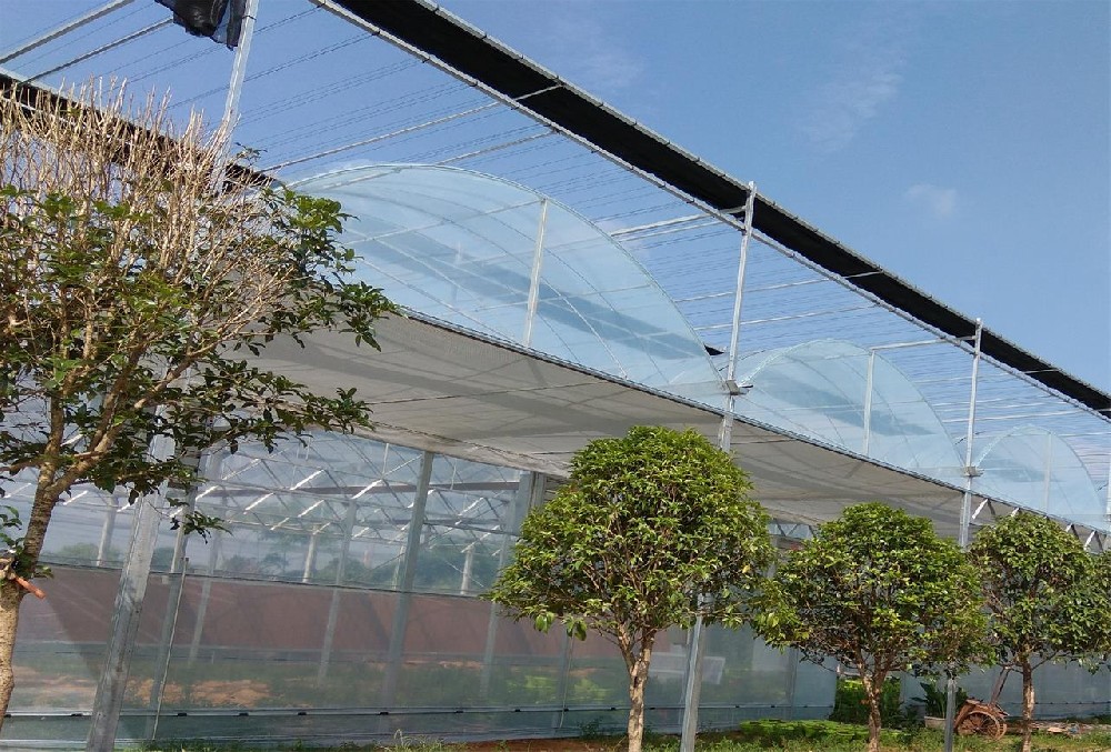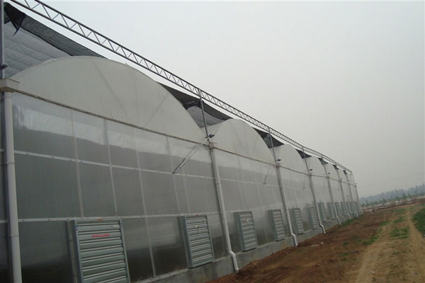 薄膜连栋温室有单层薄连栋温室和双层充气膜温室,单层膜连栋温室主要以单层塑料和为覆盖材料,有拱顶和尖顶两种。单层膜连栋温室采用热镀锌钢骨架结构装配,防腐防锈,温室内部操作空间大,便于机械化作业,而且温室采光面积大,新膜透光率可以达到95%。由于是单层薄膜覆盖,所以保温冬季保温性能相对较差,北方地区冬季运行成本太高。但单层膜连栋温室造价低,冬季在南方地区适当补温就可以四季使用.。